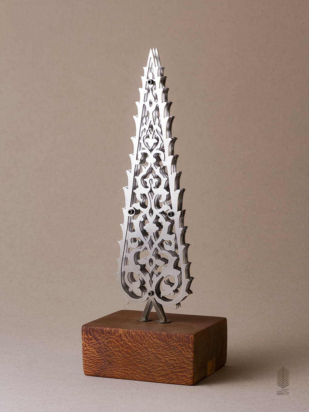 مجسمه فلزی درخت سرو نقشدار قاجاری
