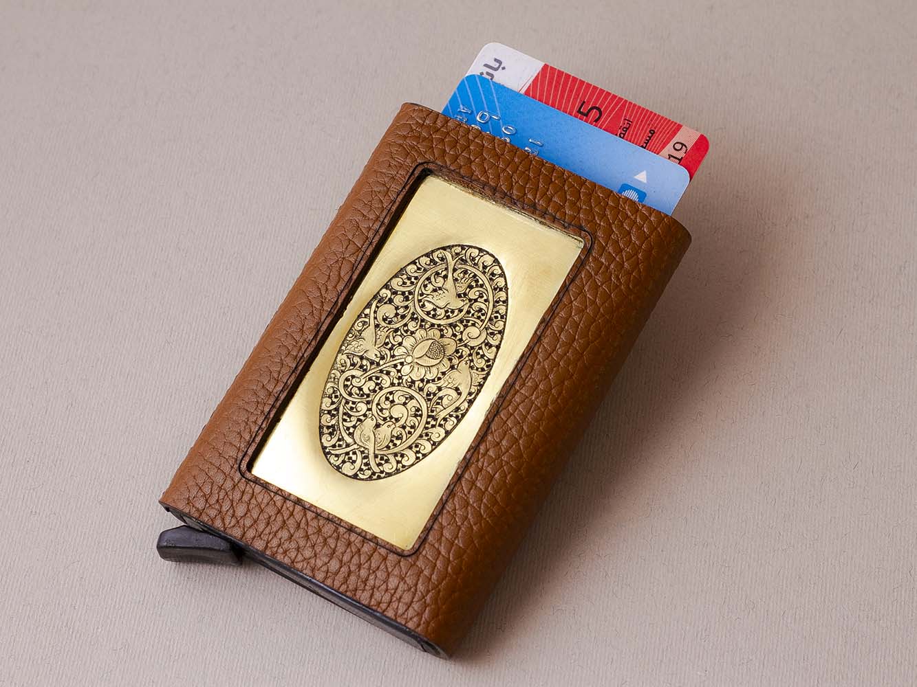 چرم طبیعی و قلمزنی شده روی فلز برنج