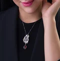 آویز نقره قلمزنی شده با سنگ لعل قرمز