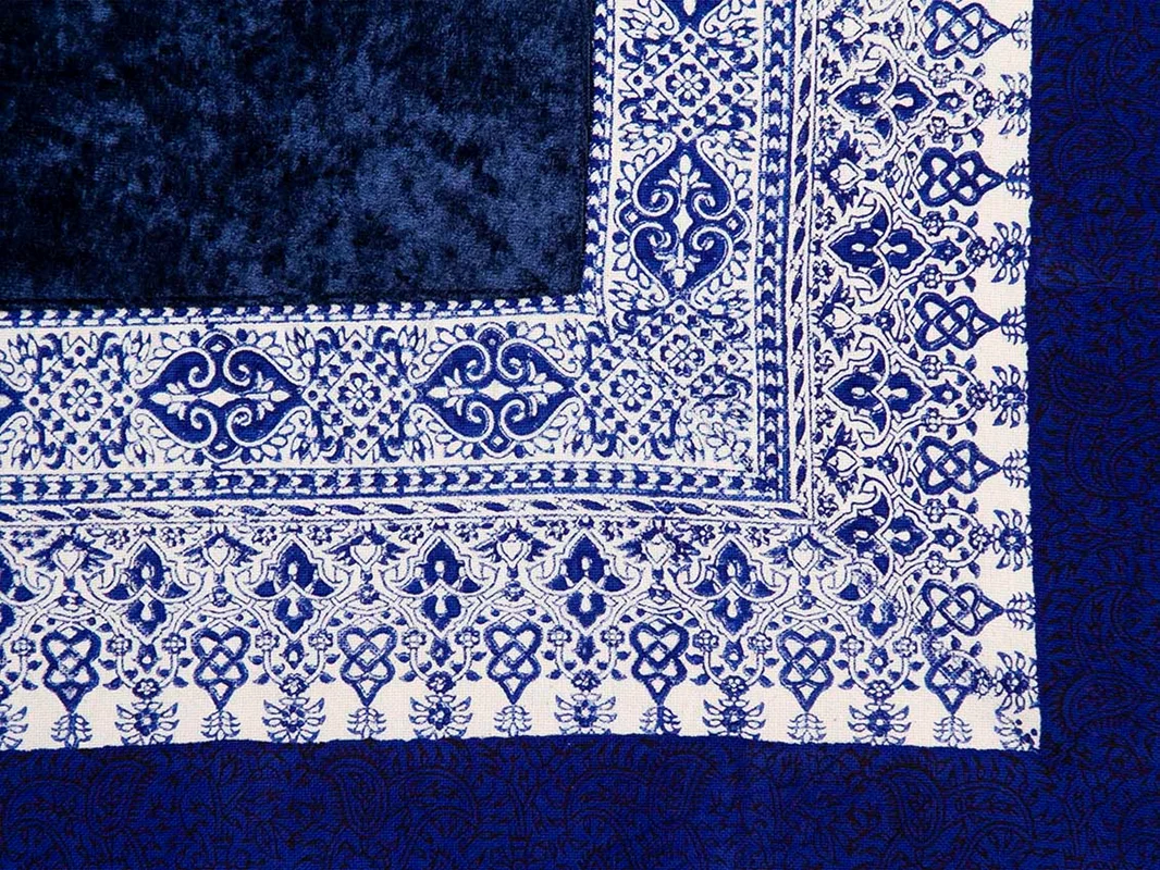 ترکیب پارچه مخمل و پارچه نخی چاپ قلمکار ( لاجوردی )