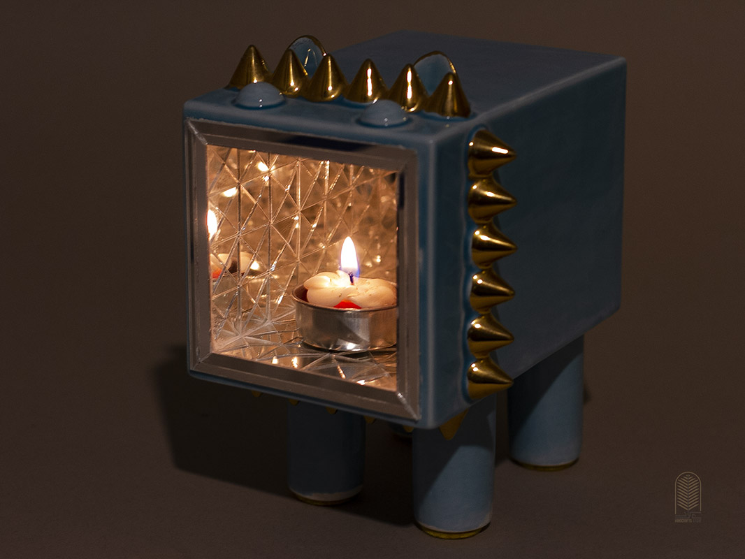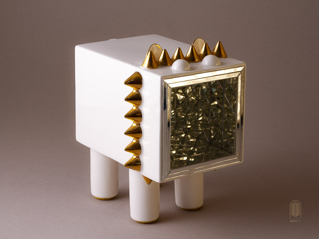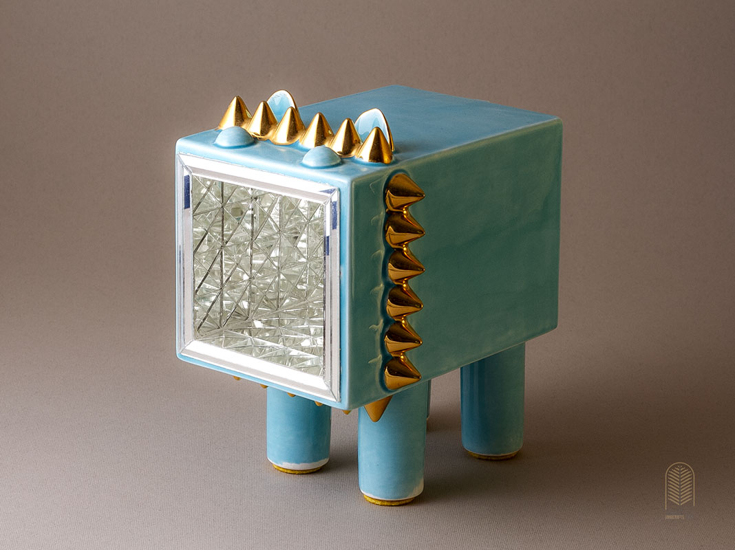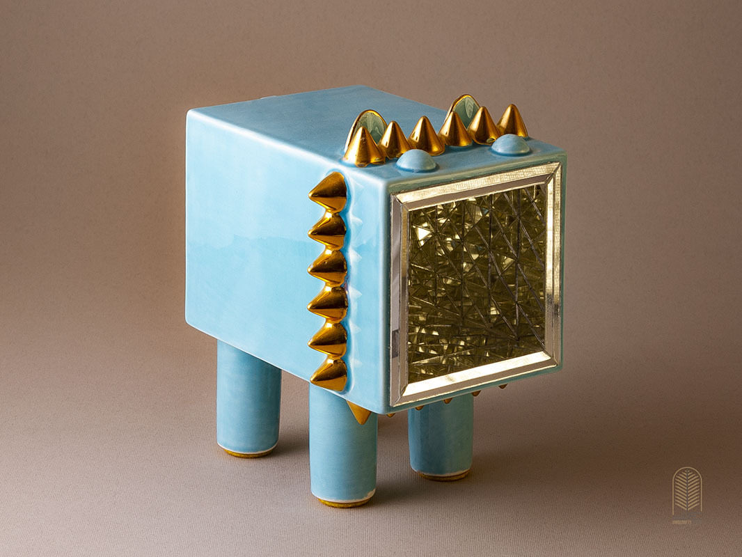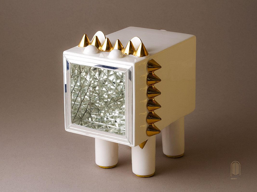 سطح سرامیک با قطعات آینهکاری ظریف پوشیده شده که در برخورد با نور، جلوهای درخشان و زنده به فضا میبخشد. هر تندیس بهصورت کاملاً دستی و منحصربهفرد ساخته و پرداخته شده است؛ بنابراین هیچ دو اثری دقیقاً شبیه به هم نیست.