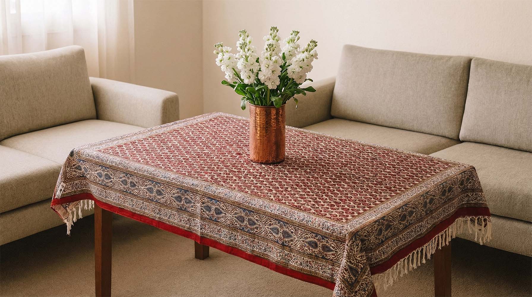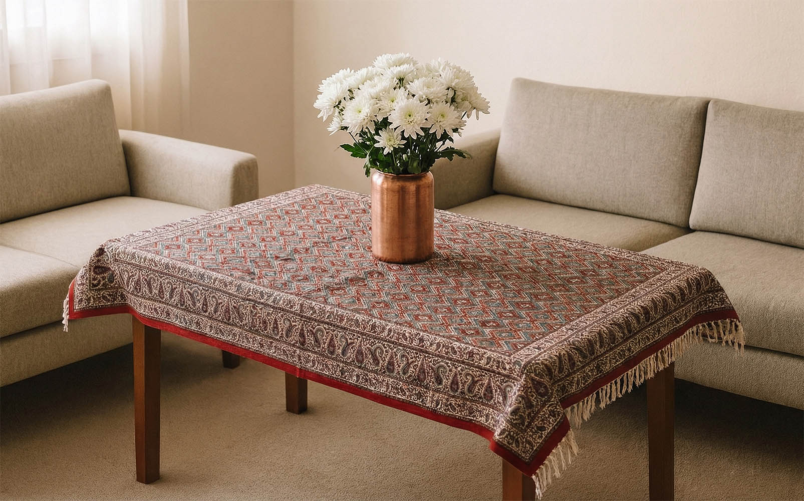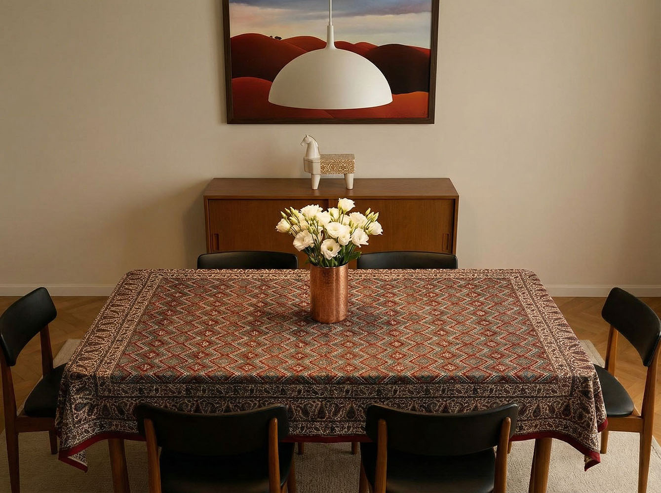 رومیزی قلمکار دستی اصفهان، اثری اصیل از هنر کهن پارچهچاپی ایران است. این رومیزی با ابعاد ۱۳۵ در ۲۰۰ سانتیمتر، بهصورت کاملاً دستساز و با استفاده از قالبهای چوبی سنتی چاپ شده است. طرحهای الهامگرفته از طبیعت و نقشهای اسلیمی روی پارچهی پنبهای لطیف اجرا شدهاند و جلوهای گرم و صمیمی به فضای دکوراسیون میبخشند.