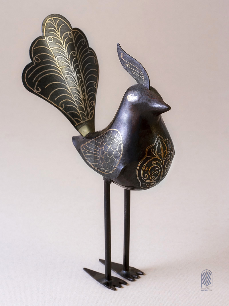 سیم نقره 925 بروی پرنده به روش کوفته گری کوبیده شده است.