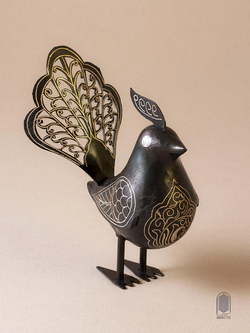 سیم نقره 925 بروی پرنده به روش کوفته گری کوبیده شده است.